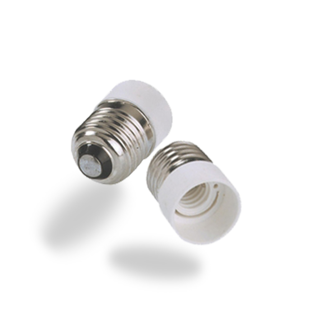 Η κατασκευή του συνδυάζει μεταλλικό σπείρωμα για αξιόπιστη αγωγιμότητα και θερμοπλαστικό σώμα για αντοχή στη θερμότητα. Ο αντάπτορας βιδώνει εύκολα στη βάση Ε27 και δέχεται με ασφάλεια λαμπτήρες Ε14. Ο σχεδιασμός του διατηρεί χαμηλό ύψος και δεν αλλοιώνει τη θέση ή την αισθητική του φωτιστικού.
