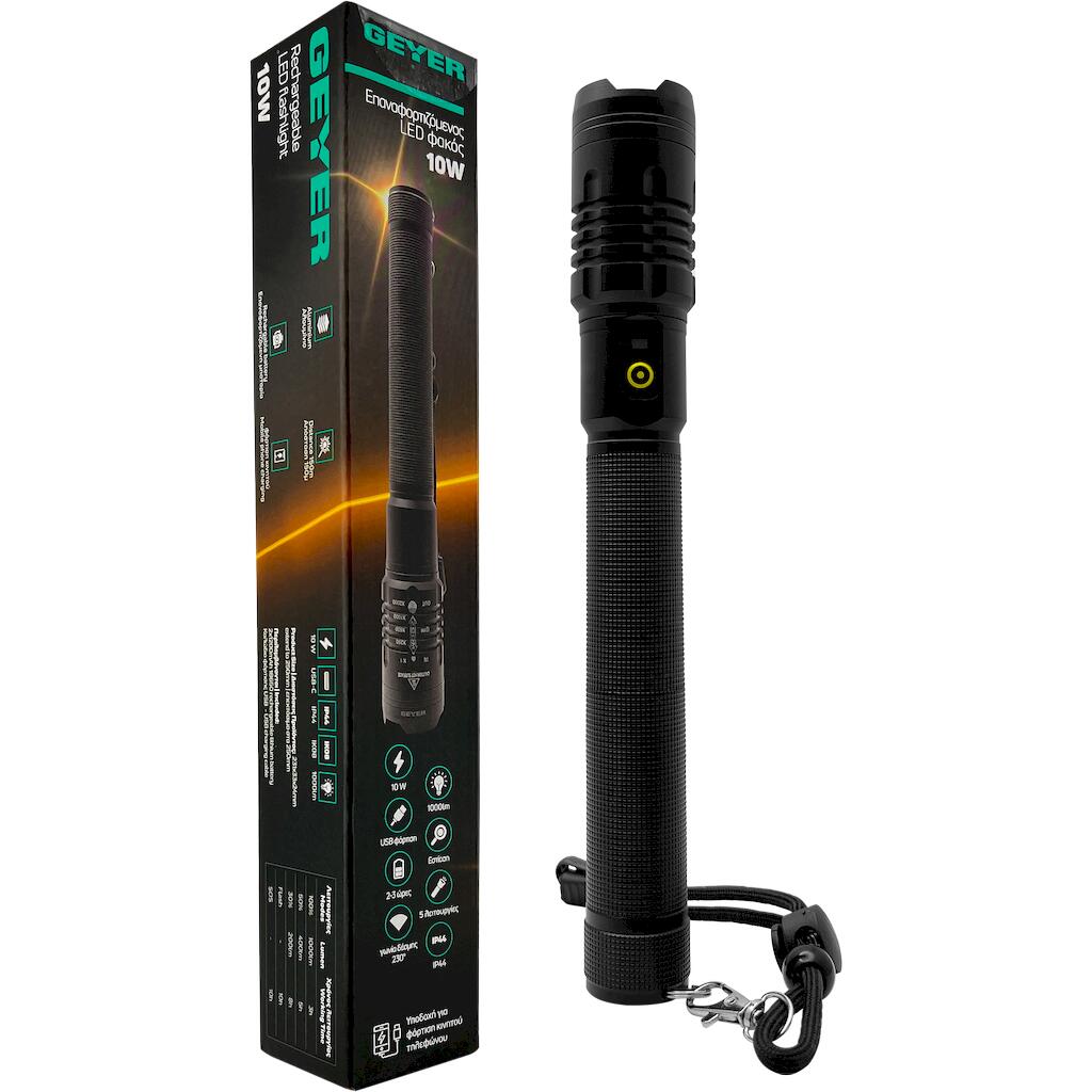 Ο Geyer Επαναφορτιζόμενος LED Φακός 10W συνδυάζει ισχυρό φωτισμό και φορητότητα, ιδανικός για κάθε ανάγκη φωτισμού στο σπίτι, στο αυτοκίνητο ή σε εξωτερικές δραστηριότητες. Με τεχνολογία LED υψηλής απόδοσης, παρέχει έντονο φως 10W που φωτίζει ακόμα και σκοτεινές γωνίες με σταθερή και ομοιόμορφη δέσμη. Η εργονομική σχεδίαση και το ελαφρύ σώμα του επιτρέπουν εύκολο κράτημα και άνετη χρήση για ώρες.
