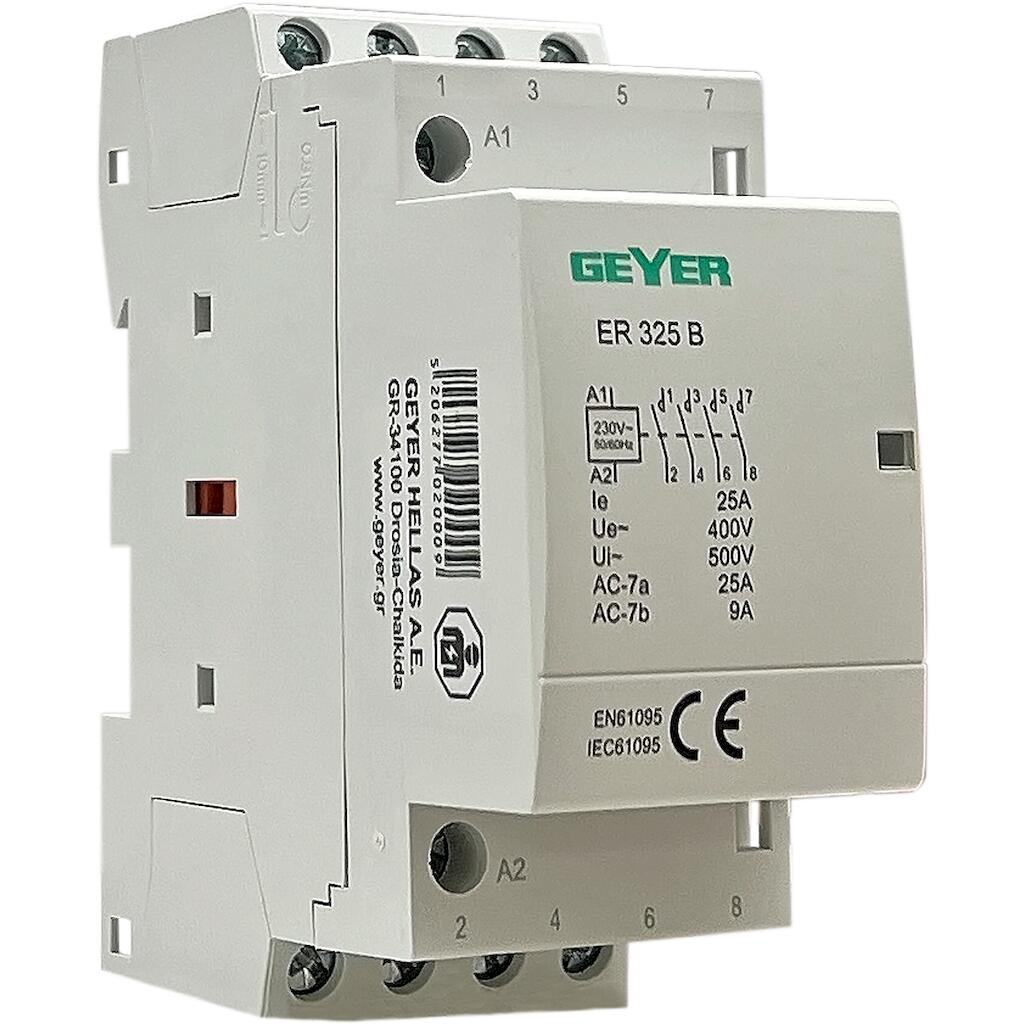 Το ρελέ υποστηρίζει ονομαστικό ρεύμα 25A και λειτουργεί στα 230V AC, επομένως ενσωματώνεται απευθείας σε τυπικές ηλεκτρικές εγκαταστάσεις. Οι τέσσερις κανονικά ανοικτές επαφές (4NO) προσφέρουν ευελιξία σύνδεσης, καθώς επιτρέπουν έλεγχο πολλών κυκλωμάτων ταυτόχρονα. Το πλάτος 2,5M εξοικονομεί χώρο στον πίνακα και διευκολύνει τη διάταξη των υλικών.
